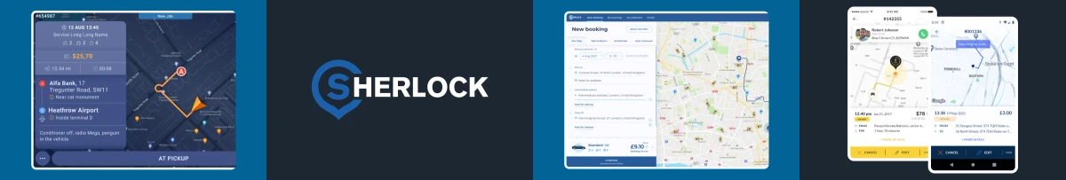 Sherlock Taxi’s business software includes features such as automated dispatching, real-time tracking, driver management, customer booking apps, and reporting tools.